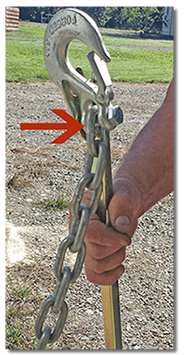 Installing the chain hookup tool is very easy; just attach it to your existing safety chains!